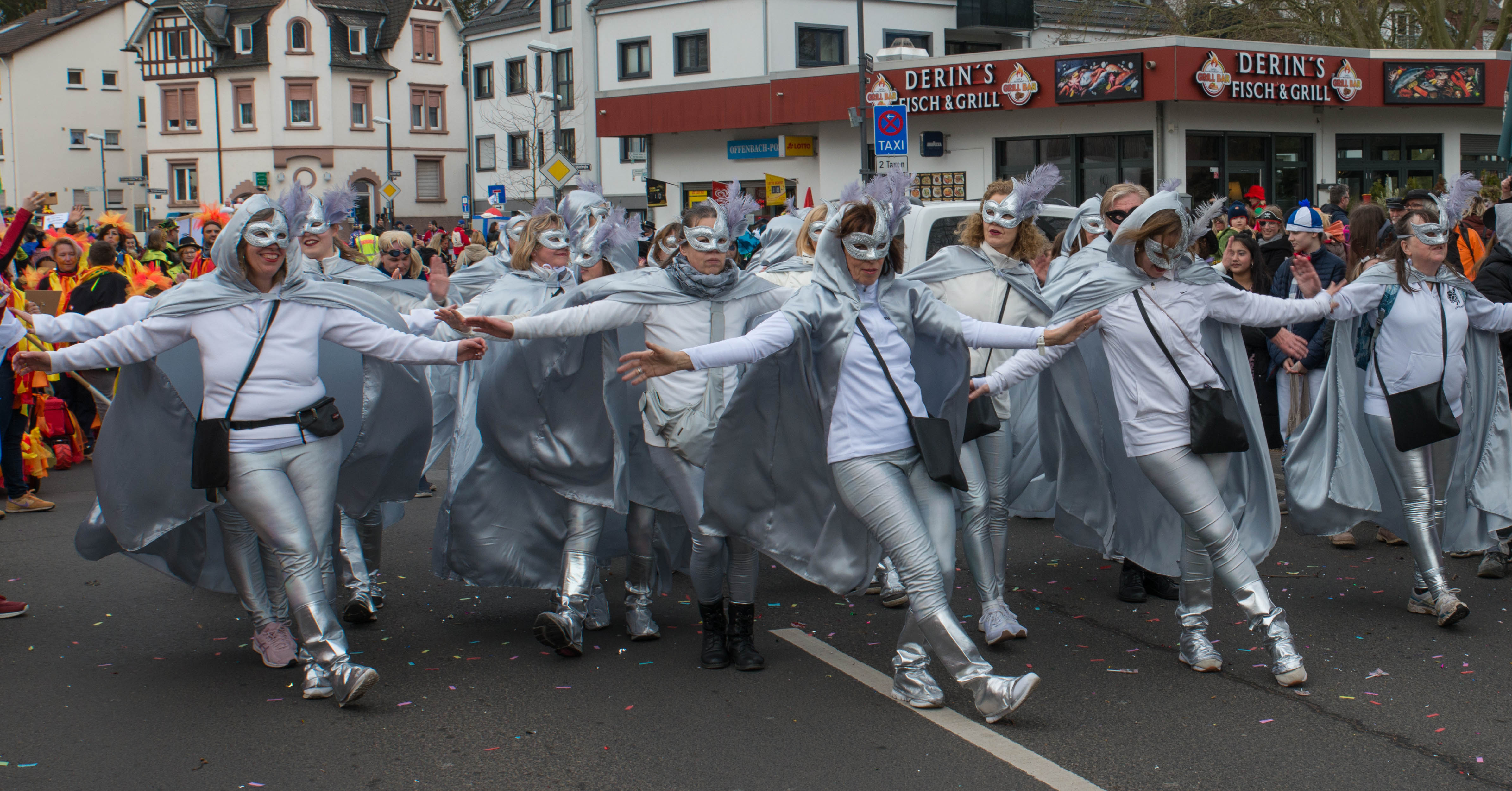 Nach zwei Jahren Pause konnten wir dieses Jahr endlich wieder beim Bieberer Faschingsumzug mitlaufen. Verkleidet als „The Masked Dancers“ zogen wir am 18. Februar in silbernen Umhängen und Masken durch Biebers Straßen und sorgten durch drei verschiedene Choreografien tanzend für Unterhaltung und gute Stimmung bei den Zuschauern. Im Anschluss gab es wie immer noch eine kleine Party am Ostendplatz.