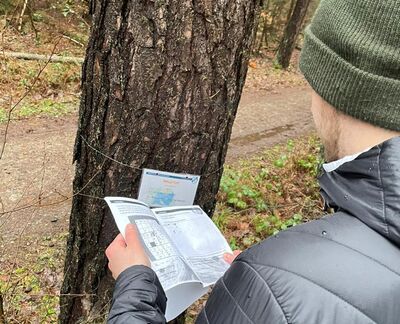 Die kniffeligste Stelle war die Aufgabe 5. Hier sollte die richtige Strecke nach Hüttental ermittelt und dann bis zum „Waldtor“ gelaufen werden. An diesem Standort führten allerdings fünf Wege von der Kreuzung weg. Alle, die den richtigen Weg eingeschlagen haben, fanden dann nach 72 1-Meter-Schritten den Hinweis auf der Rückseite eines Baumes.