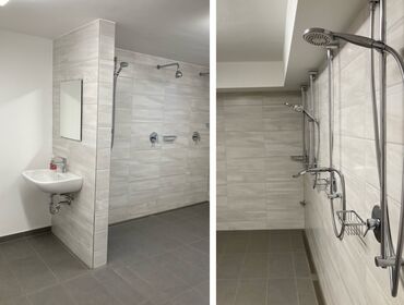Neue Strom - und Wasserleitungen wurden verlegt, alte Durchgänge verschlossen und neue geschaffen, Fenster in den Umkleiden ausgetauscht, neuer Estrich in den Duschen gegossen, freundliche Fliesen und Möbel rausgesucht sowie viele, helle und freundliche LED-Spots installiert.